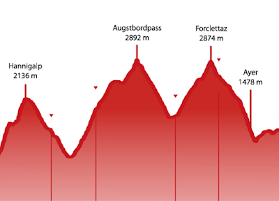 Fiechist lahkudes ootas kohe ees tõus mis oli suurem kui elu. Ega mul ausaltöelda mingeid mälupilte selle kohta praegu küll ei ole. Ka järgnenud laskumine koos uue tõusuga on kadunud üleüldisesse unenäotaolisesse sigrimigrisse. Meeletult ilusad vaated segatuna suure väsimusega mis kohatiselt tekitas lootusetusetunde eesootava ebaloomulikult suure distantsi kohta. Aga vahetevahel andis väsimus natuke järgi ja niimoodi oligi tunnetel pidev uperpallitamine, mis vaheldus "täitsa pekkis, ma ei suuda seda kunagi lõpuni teha" ja "käkitegu, ma teen selle mängeldes ära" vahel. Päeval paistab ka päike ja temperatuur muutub üsna soojaks, tunnetuslikult nii 25 kraadi kanti. Üleval mägedes on küll jahedam, aga orupõhjast hingab kuuma vastu. Kuna stardipäev on jahe ja pilves olnud, siis loomulikult on ka päikesekreem ning nokats follower bag's ja põlen korralikult ära. Vahepeal on päris tore teeninduspunktikogemus Giw'is, kus lisaks muule ka õlut pakutakse. Viimane laskumine enne Eistenis asuvat baasi on eriti vastik. Järsk laskumine juurikase metsa vahel, kus teerada vahest väga ära kaduma kippus. Juurikate tihedus oli selline, et vahetevahel tundus neid mitmete kihtidena üksteise peale kuhjunud olevat. Eistenisse jõudes oli täitunud 100 km ja väsimus oli suur. Lisandunud oli nüüd ka uni, olin kokku liikumises olnud üle 30 tunni ja võtnud juba 7200 tõusumeetrit. Baasis kõigepealt sõin kõhu täis, panin pealambi akud ja kella laadima ja läksin magama. See toimus suures võimlas mattide peal. Olin planeerinud magada 2 tundi. Edu cut-off aja ees oli piisavalt suureks kasvanud, et sain endale seda lubada. Ja kuna edaspidi muutusid cut-offid järjest lõdvemaks, siis sain südamerahuga suure osa olemasolevast ajast ära kasutada. Ärgates vaatasin telefonist kella ja nägin, et olen kogu planeeritud aja peaaegu täis maganud, või vähemalt mu unesegane pea arvas niimoodi, sest peale mõningast asjade kokkupakkimist ja riietumist avastasin, et tegelikult olin maganud vaid tunni. Proovisin siis uuesti uinuda, aga see ei tahtnud kuidagi õnnestuda. Iga viie minuti tagant ärkasin ja vaatasin kella. Kui pool tundi oli möödunud, siis sai mul sellest kõrini, sõin veel natuke, jõin kohvi ja asusin jälle teele.